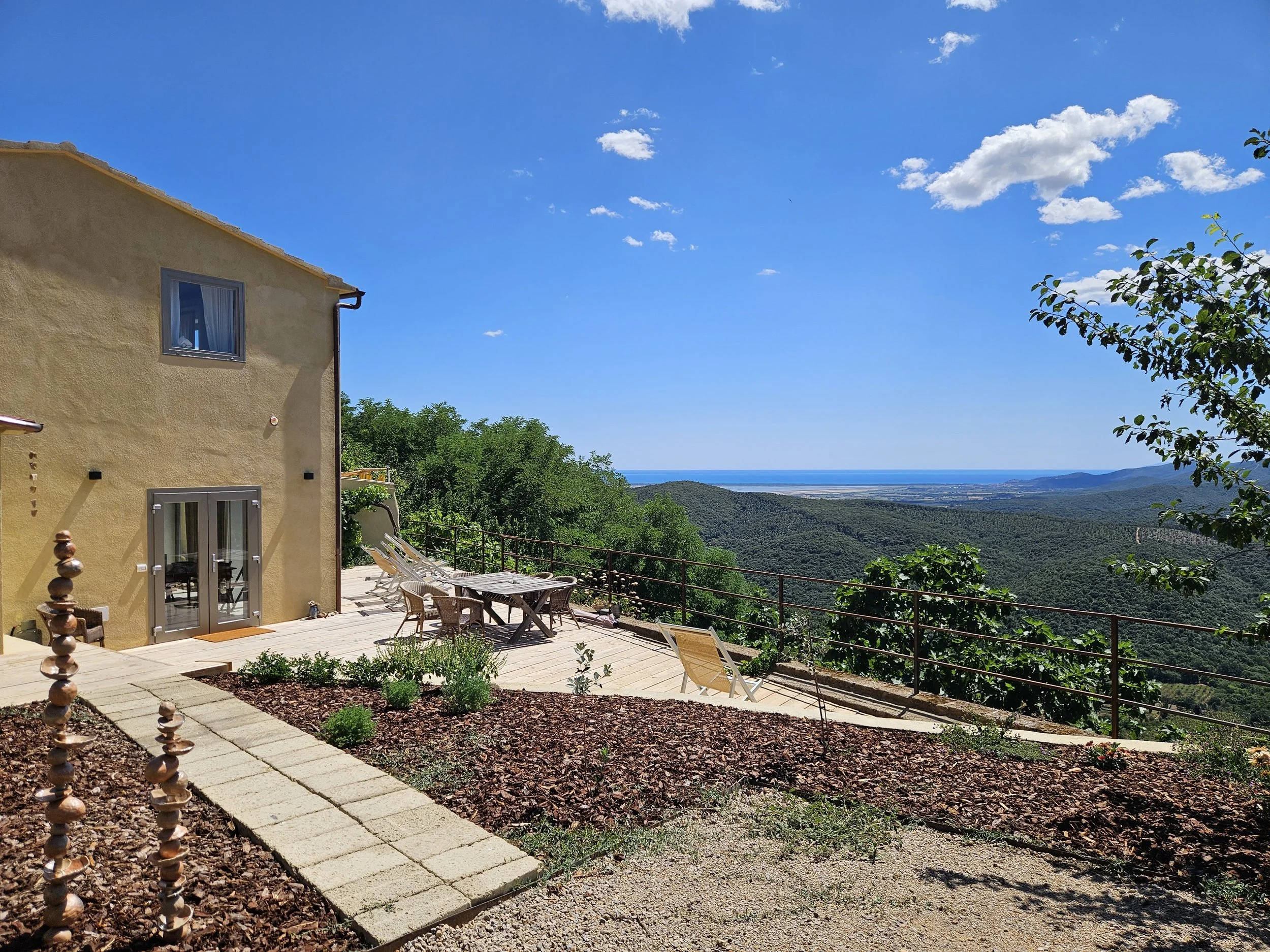 Open views across the Tuscan hills and toward the sea